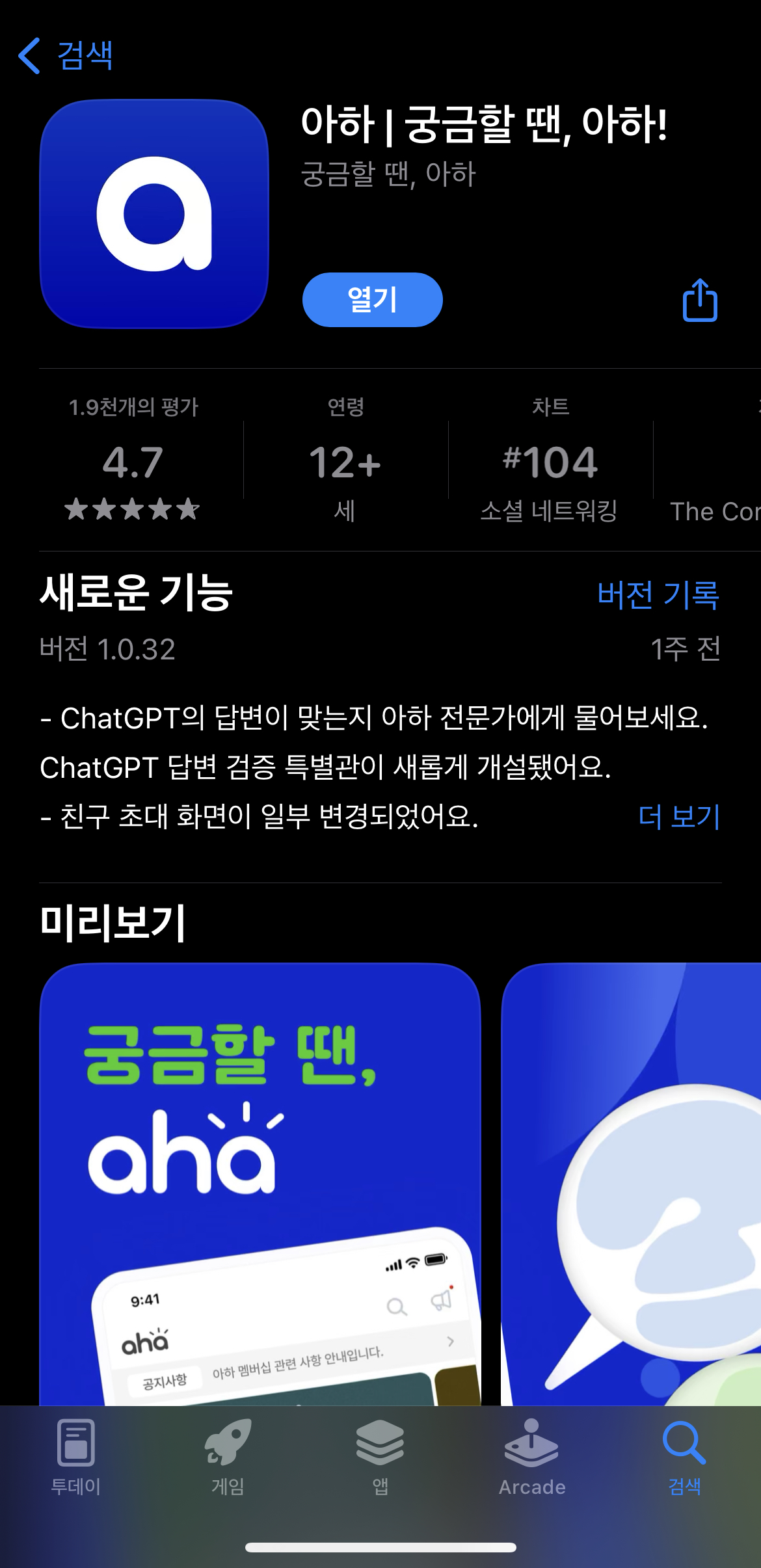 앱스토어나 구글스토어에서 아하 또는 AHA 검색하여 아래 어플 받기. (안드로이드, 아이폰 모두 가능)